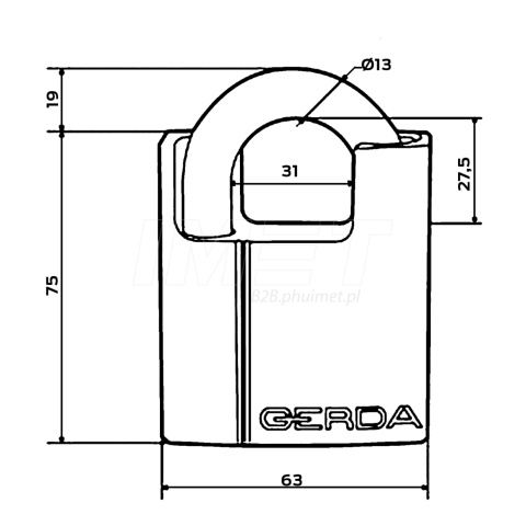 Kłódka pałąkowa GERDA ZIRCON 116 at.kl 6 C ochrona pałąka