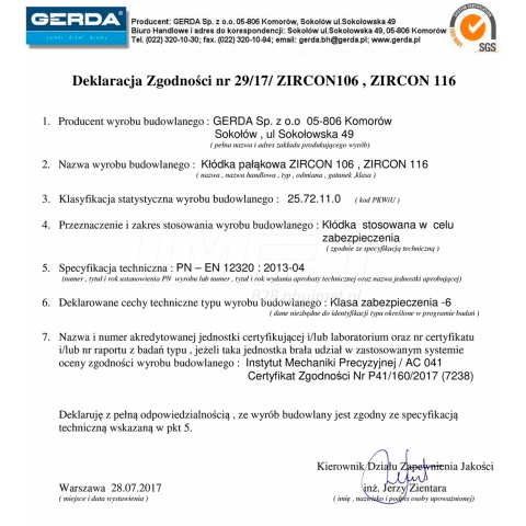 | GERDA ZIRCON Kłódka „do zadań specjalnych”. Najwyższej klasy zabezpieczenie i jedyna polska kłódka w tej klasie na naszym rynku. Zaprojektowana w dwóch wersjach – z ochroną pałąka i bez. ZIRCON jest w stanie wytrzymać 12 ton siły zrywającej, jest odporny na wiercenie i skręcanie. Posiada trwały i odporny na kurz i zabrudzenia mechanizm dyskowy. Dzięki swoim właściwościom zapewni najbardziej bezpieczne zamknięcie tam gdzie Państwo tego potrzebują. |