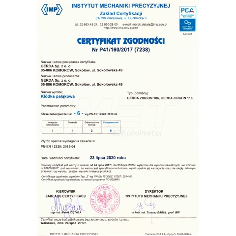 | Certyfikat | NATO, Instytut Mechaniki Precyzyjnej (IMP) |