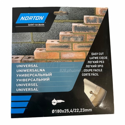 Tarcza diamentowa Norton 601272 posiada średnicę 180 mm, a jej wewnętrzny otwór ma wymiary 25,4/22 mm. Tarcza została wyprodukowana z myślą o cięciu betonowych rur, krawężników, płytek brukowych oraz kostki brukowej średniej wielkości. Można jej używać zarówno na sucho, jak i na mokro.