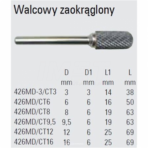 Walcowy pilnik obrotowy węglikowy Beta 426MD/CT16 16x25 mm, trzpień 6 mm