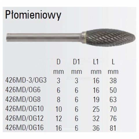 - Płomieniowy pilnik obrotowy węglikowy Beta 426MD/OG12 12 x 32 mm, trzpień 6 mm