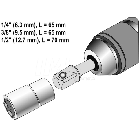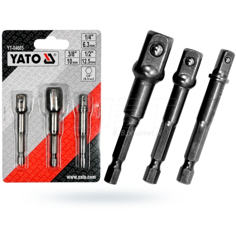 Redukcja 1/4 hex x kwadrat 1/2, 1/4, 3/8 3-części