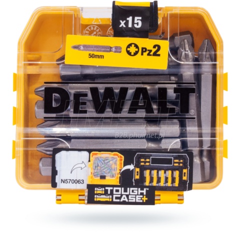 Zestaw bitów amerykańskiego producenta DeWalt idealnie nada się dla każdego użytkownika. Zestaw zawiera bity o długości 50 mm z końcówką Pozidriv 2. Całość znajduje się w poręcznym opakowaniu TOUGH CASE+ wykonanego z tworzywa sztucznego. W opakowaniu znajduje się 15 sztuk wytrzymałych bitów, nadających się do pracy z wkrętarkami czy zakrętarkami.
