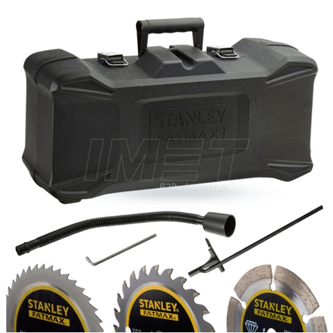 W skład zestawu wchodzi: Pilarka uniwersalna Stanley Fatmax FME380, Tarcza diamentowa do ceramiki 89 x 10 mm ( STA10415 ), Tarcza pilarska widiowa TCT do drewna 89 x 10 mm / 24 zęby ( STA10410 ), Tarcza pilarska HCS do metalu 89 x 10 mm / 44 zęby ( STA10420 ), Prowadnica do cięcia wzdłużnego, Przyłącze do odsysania, Klucz do wymiany tarcz Instrukcja obsługi ( PL ), Karta gwarancyjna, Walizka transportowa