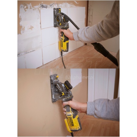 Najważniejsze cechy multipilarki Stanley Fat Max FME380: - Mocny silnik 650W. - Włącznik spustowy z zabezpieczeniem pod korpusem wraz z ogumowaną rękojeścią zapewnia pewny chwyt narzędzia i zwiększa kontrolę cięcia. - Efektywny system odprowadzania pyłu ( Przyłącze elastyczne w zestawie ). - Beznarzędziowa regulacja głębokości cięcia. - Laserowy wskaźnik cięcia zapewniający precyzyjną pracę. - 3 – metrowy przewód zasilający. - Łatwo dostępny przycisk blokady wrzeciona umożliwiający szybką i prostą wymianę tarczy. - Ergonomiczne umiejscowienie dźwigni osłony tarczy podnosi bezpieczeństwo pracy.
