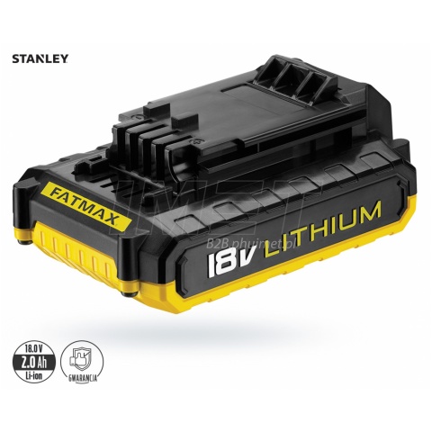 Akumulator Stanley Fatmax do narzędzi z serii 18V o pojemności 2,0Ah wykonany w technologi Li-Ion FMC687L. Technologia litowo-jonowa w nowoczesnych akumulatorach do narzędzi pozwala na optymalizację zużycia energii i znacznie wydłużyła czas pracy z jednego naładowania akumulatora. Akumulatory te charakteryzują się dużą ilościa cykli ładowań (do 3 razy więcej cykli niż w dotychczasowych akumulatorach Ni-Cd czy Ni-MH). Akumulatory Li-Ion nie mają "efektu pamięci", można je doładowywać w każdym momencie pracy, nie zalecane jest natomiast przerywanie cyklu ładowania.