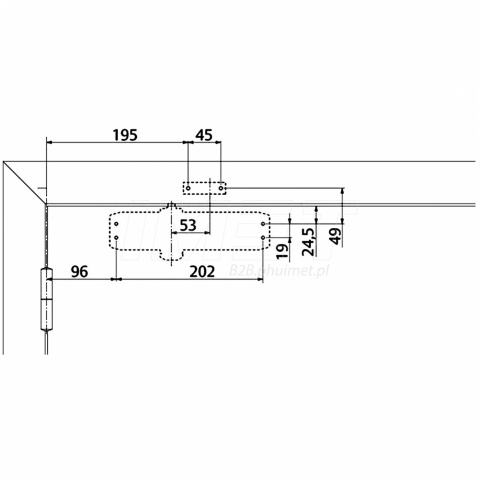 | Sposób montażu: | Montaż siłownika na skrzydle po stronie zawiasów lub na ościeznicy po stronie przeciwzawiasowej |
