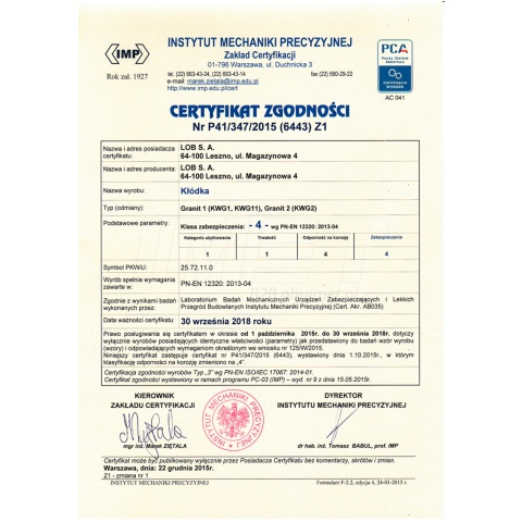 Klasa bezpieczeństwa 4 wydana przez IMP w Warszawie
