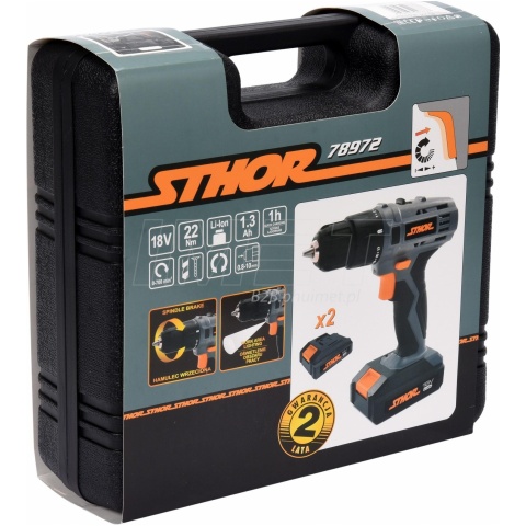 Wiertarko-wkrętarka STHOR 78972 18V 2x1,3Ah ładowarka, walizka