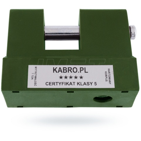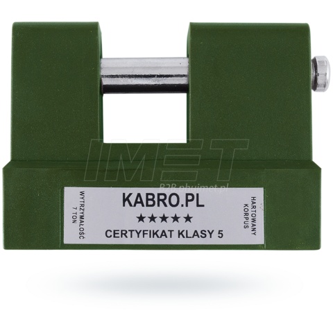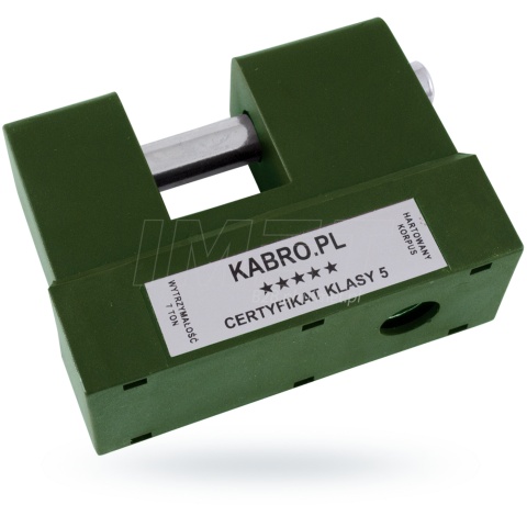 Stalowa kłódka trzpieniowa KABRO C5 wyróżnia się dużą wytrzymałością mechaniczną, co potwierdza otrzymany przez nią certyfikat wysokiej klasy. Konstrukcja mechanizmu bębenkowego i klucza zapewniają dużą ilość kombinacji oraz trudność otwarcia. Podczas prób w Laboratorium Kryminalistycznym KG Policji mechanizm ten nie został otworzony.
