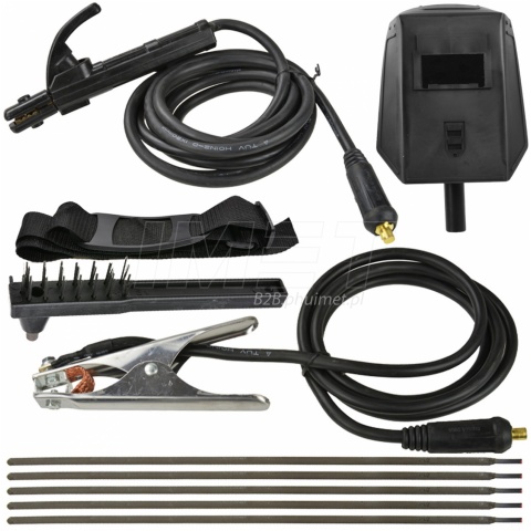 Przewód spawalniczy, przewód masowy, maska spawalnicza, pasek na ramię, szczotka z młoteczkiem, elektrody