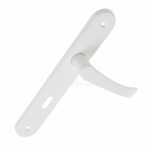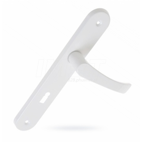 Klamka do drzwi wewnętrznych z szyldem podłużnym na klucz 72KL w kolorze białym IMET 7203
