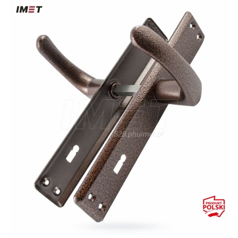 Klamka do drzwi wewnętrznych z szyldem podłużnym na klucz 72KL w kolorze brązowym IMET 7206