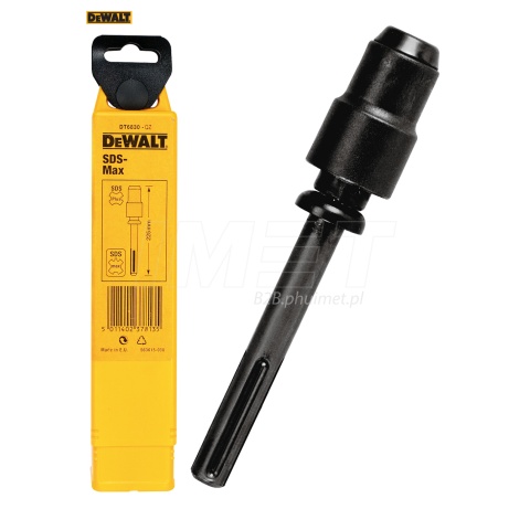 Adapter DT6830 DeWALT umożliwia korzystanie z osprzętu (wierteł lub dłut) z uchwytem SDS-Plus na urządzeniach z uchwytem SDS-Max. Adapter pozwala np. zamontować wiertła z uchwytem SDS+ w młotach obrotowo-udarowych z uchwytem SDS-max.
