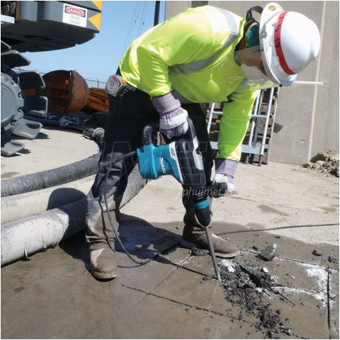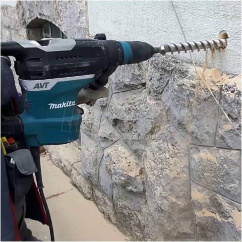 Młot obrotowo-udarowy o mocnym silniku 1100 W firmy Makita o symbolu HR4013C. Mocowanie wiertła na uchwycie SDS-MAX. Młotowiertarka zapakowana została w praktyczną walizkę, co ułatwia przechowywanie oraz transport narzędzia. Znajduje swoje zastosowanie podczas lekkich robót wyburzeniowych, przekuć oraz wiercenia (pełnymi wiertłami w betonie otworów do 40mm). Posiada 2 tryby pracy, możliwość doboru częstotliwości udaru do wykonywanej pracy, układ łagodnego rozruchu i elektroniczną regulację prędkości obrotowej. Wyposażony został w system antywibracyjny AVT & SOFT no LOAD, (możliwość doboru częstotliwości udaru do wykonywanej pracy).