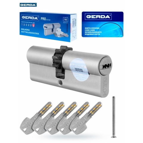 Wkładka zamka z zębatką 40/70 nikiel ATEST Klasa C 6,2. Wkładka bębenkowa antywłamaniowa, dwustronna do zamka. 5 x klucz PRO SYSTEM GERDA