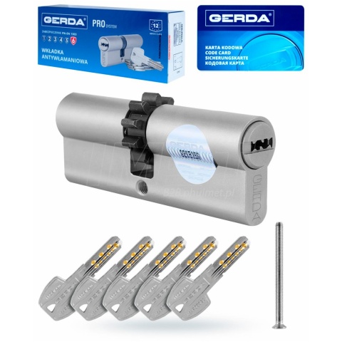 Wkładka zamka z zębatką 40/90 nikiel ATEST Klasa C 6,2. Wkładka bębenkowa antywłamaniowa, dwustronna do zamka. 5 x klucz PRO SYSTEM GERDA