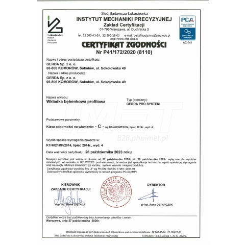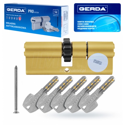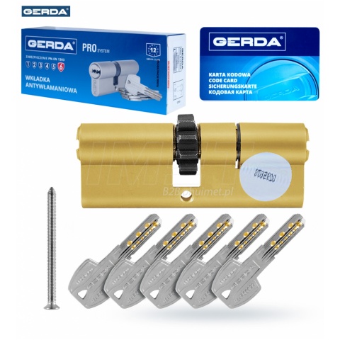 Wkładka zamka z zębatką 45/80 mosiądz ATEST Klasa C 6,2. Wkładka bębenkowa antywłamaniowa, dwustronna do zamka. 5 x klucz PRO SYSTEM GERDA