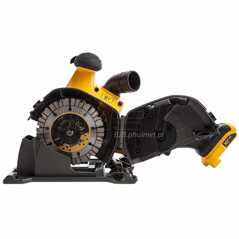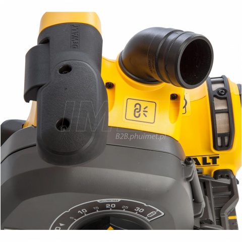 | Profesjonalna bruzdownica akumulatorowa do betonu firmy DeWALT DCG200 z mocnym i wydajnym silnikiem bezszczotkowym 54V. Urządzenie współpracuje z 2 tarczami diamentowymi 125mm. Bruzdownica do wycinania rowków pod instalacje elektryczne, wodne, grzewczej w murze, betonie, cegle oraz innych materiałach budowlanych. Ważnym atutem maszyny jest regulacja szerokości cięcia (do 35mm) regulujemy za pomocą przekładek instalowanych pomiędzy tarczami. Natomiast głębokość (do 32mm) regulujemy za pomocą pokrętła. Bruzdownica współpracuje z bezprzewodowym systemem sterowania narzędziami Wireless Tool Control i systemem odsysania pyłu Airlock Dewalt, dzięki czemu możliwa jest automatyczna aktywacja odkurzacza.