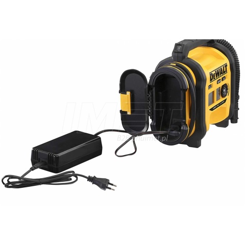 Dzięki takiemu rozwiązaniu do tego kompresora możemy korzystać w przydomowym warsztacie garażu bez konieczności posiadania akumulatora DeWALT czy dostępu do gniazda zapalniczki w samochodzie.