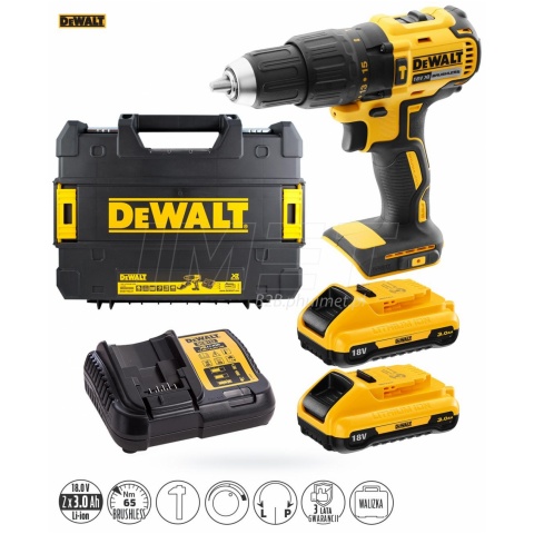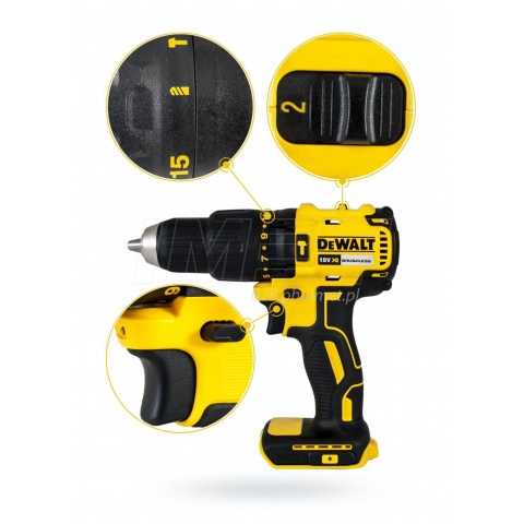 Akumulatorowa wiertarko-wkrętarka udarowa 2 biegowa DCD778 DeWALT bazuje na bezszczotkowym silniku gwarantującym duży zakres prędkości obrotowej, wysoki moment obrotowy na niskich obrotach bez przegrzewania się oraz dużą odporność na zapylenie i zmniejszone gabaryty. Model 778 jest bardzo podręczny i lekki, przez co sprawdzi się przy montażu i precyzyjnych pracach w zakamarkach. Pomimo małych gabarytów i lekkiej wagi wkrętarka ma aż 65Nm, a na drugim biegu osiąga 1750 obrotów na minutę. Moment dokręcania można ograniczać sprzęgłem o 15 nastawieniach. Jasna dioda LED doświetla strefę roboczą.