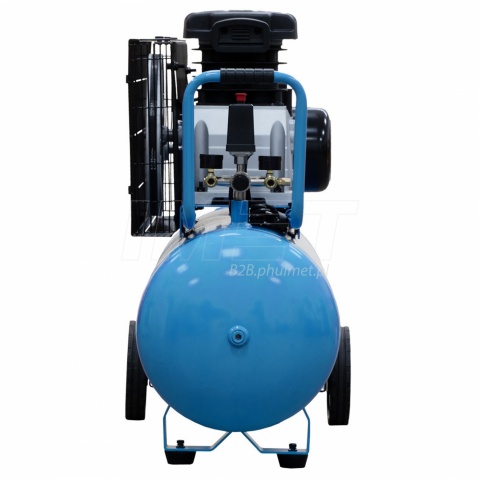- Napęd pasowy zwiększa wydajność przy niższych obrotach i wspomaga efektywne chłodzenie, co wydłuża żywotność kompresora