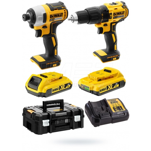 Zestaw narzędzi akumulatorowych DCK2060D2T DeWALT jest małym zestawem montera wyposażonym w najlżejsze akumulatory. Combo składa się z dwubiegowej wiertarko-wkrętarki udarowej i kompaktowej zakrętarki udarowej. Ergonomiczne konstrukcje z powłokami antypoślizgowymi na rękojeściach oraz oświetlenie LED w podstawach akumulatorów zapewniają komfortową pracę nawet w pozycjach wymuszonych. Udar mechaniczny w wiertarce akumulatorowej umożliwia wykonywanie otworów w ceglanych murach pod małe kołki rozporowe, typowe dla zawieszanych mebli i dekoracji. Zakrętak udarowy pozwala na błyskawiczne wkręcanie wkrętów lub śrub z dużą siłą dokręcania i płynną regulacją prędkości.