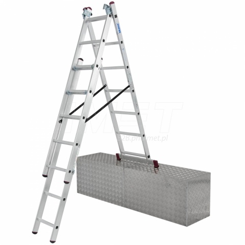Drabina wielofunkcyjna Corda 3x9 szczebli , jest to trzyelementowa drabina Krause, z zasięgiem pracy do 6,20 m.