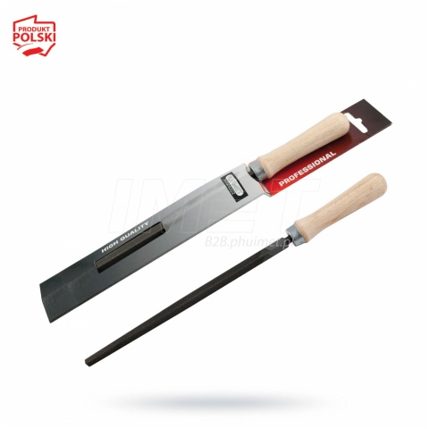 | Pilnik kwadratowy wykonany ze stali węglowej narzędziowej N12E. Posiada drewnianą rękojeść. |
