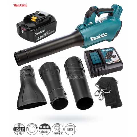 Czas pracy dmuchawy przy pracy ciągłej z maksymalną wydajnością wynosi: Akumulator BL1850B (5Ah) - 10 min. Akumulator BL1860B (6Ah) - 12min.