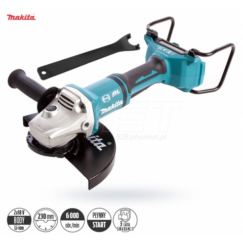 Akumulatorowa szlifierka kątowa 230mm Makita DGA900 to profesjonalne elektronarzędzie zasilane za pomocą 2 akumulatorów Li-Ion o napięciu 18V. Wyposażona w bezszczotkowy silnik prądu stałego (zasilany napięciem 36V) gwarantuje zwiększoną wydajność i długość działania na jednym naładowaniu akumulatora. To bardzo wydajne akumulatorowe elektronarzędzie przeznaczone do cięcia i szlifowania metalu. Szlifierka, dzięki solidnej i wytrzymałej konstrukcji dostosowana jest do pracy z dużymi elementami. Szlifierka wyposażona jest w szereg innowacyjnych technologii, które zwiększają trwałość i wydajność elektronarzędzia.