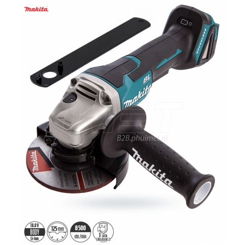 Szlifierka akumulatorowa Makita 125mm osiąga prędkość 8500 obr./min. Elektronarzędzie wyprodukowano w technologii XPT (podwyższona odporność na pył i wilgoć). Szlifierka posiada funkcję Anty-restart oraz bezszczotkowy silnik prądu stałego. Szlifierka kątowa sprzedawana w zestawie z osłoną tarczy, uchwytem bocznym, kluczem do nakrętki kontrującej oraz tarczą szlifierską INOX 125x6x22,23.