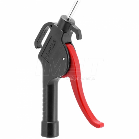 Pistolet do przedmuchu AIRPRESS 45023 z regulowanym przepływem powietrza i 25-centymetrową dyszą to doskonałe narzędzie wykonane z kompozytu. Jest przedłużany, co umożliwia skuteczne przedmuchiwanie sprężonym powietrzem w ciasnych przestrzeniach. Jego zastosowanie jest wszechstronne - idealnie nadaje się do usuwania zanieczyszczeń z maszyn, urządzeń i silników. Nieoceniony zarówno w profesjonalnych serwisach, jak i w domowym warsztacie. Produkt jest niezbędny do usunięcia pyłów, wiórów, piasku i innych zabrudzeń za pomocą sprężonego powietrza. Wykonany z wytrzymałego tworzywa sztucznego, posiada specjalny uchwyt do wygodnego zawieszenia.
