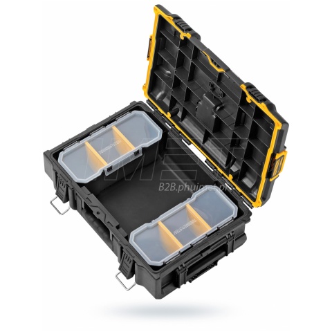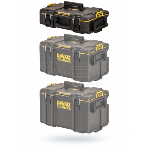 Profesjonalna, wytrzymała skrzynia narzędziowa DS166 DWST83293-1 firmy DeWALT z serii ToughSystem 2.0. DS166 jest odpowiednikiem skrzyni DS150. Skrzynia narzędziowa do przechowywania, transportu elektronarzędzi oraz akcesoriów, wyposażona w wyjmowane pojemniki na akcesoria. Ulepszone uszczelki w pokrywie sprawiają że skrzynia jest pyłoszczelna oraz wodoodporna (IP65). W skrzyni zastosowano ulepszone zatrzaski przednie - system Easyclose - które umożliwiają obsługę jedną ręką. Zmieniona konstrukcja bocznych zatrzasków sprawia, że są one intuicyjne i proste w użyciu, oszczędzają czas - po nałożeniu dodatkowego modułu zatrzaskują się automatycznie po przez delikatne dopchnięcie nakładanej skrzyni. System bocznych zatrzasków pozwala łączyć skrzynie i wózki systemu ToughSystem 2.0 oraz ToughSystem 1.0 DeWALT w dowolnych konfiguracjach według własnych potrzeb.