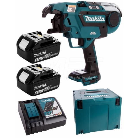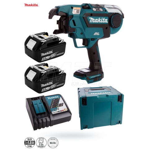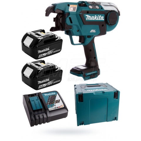 Wiązarka do zbrojeń Makita DTR180RTJ zasilana akumulatorami o napięciu 14,4 - 18V, ładowarka DC18RD, 2 akumulatory BL1850B 5Ah 18V, całość pakowana w MAKPAC IV