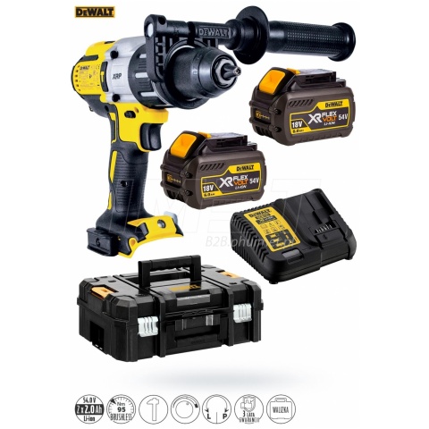 Wiertarko-wkrętarka UDAROWA BEZSZCZOTKOWA 3-biegowa 2 akumulatory FlexVolt 6,0Ah 18/54V XR DCB546 + ładowarka XR DCB115 DeWALT DCD996T2 95Nm kufer transportowy TSTAK