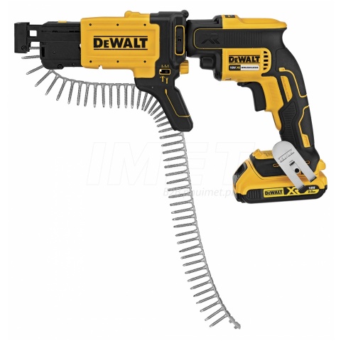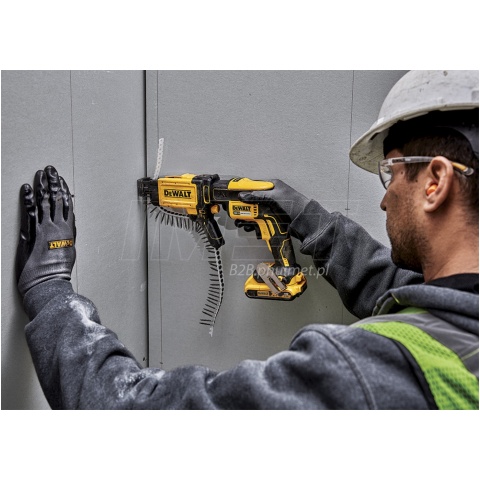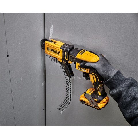 Magazynek do wkrętów na taśmie przeznaczony do szybkiego montażu płyt kartonowo-gipsowych do stelaża. Współpracuje z wkrętarkami DCF620 i DCF621, głowica kompatybilna z większością dostępnych na rynku wkrętów na taśmie.