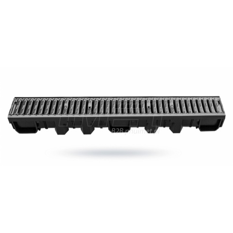 | Korytko odwadniające z rusztem szczelinowym 10 mm, ocynkowanym. Wykonane z polipropylenu (PP) plastikowe. |