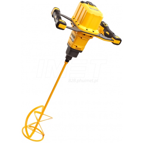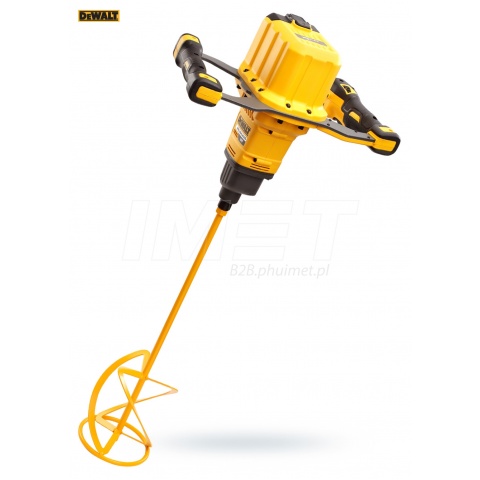 Akumulatorowa mieszarka DCD240N DeWALT wyposażona w silnik bezszczotkowy o mocy 2000W. Silnik jest zasilany bateriami serii FlexVolt 54V Li-Ion dzięki czemu możemy mieszać nawet najgęściejsze zaprawy przy użyciu mieszadła o średnicy do 160mm. Indukcyjna technologia silnika sprawia, że jest on bardzo odporny na przeciążenia i ma wysoki moment obrotowy nawet na najniższych obrotach. Technologia brushless zwiększa możliwości eksploatacyjne narzędzia - dłuższy czas pracy na jednym naładowaniu akumulatora, mniejsze bardziej kompaktowe wymiary przy zwiększonej wydajności w porównaniu z silnikiem szczotkowym. Prędkość możemy płynnie regulować w bardzo prosty sposób za pomocą pokrętła (5-stopnowego) zainstalowanego na prawej rękojeści w zakresie 0-750 obr./min, to pozwoli nam dostosować odpowiednia prędkość do wykonywanej pracy. Wygodny chwyt dwuręczny zapewnia ergonomiczną postawę i pełną kontrolę w czasie mieszania. Klasyczne mocowanie na gwint M14 to szerokie możliwości stosowania dowolnych mieszadeł dostępnych na rynku o średnicy nie przekraczającej 160 mm.