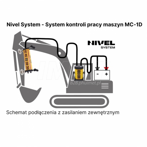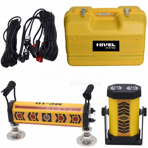 Laserowy system kontroli pracy maszyn budowlanych MC-1D to rozwiązanie niwelacyjne, pozwalające kontrolować wysokość elementu roboczego maszyny z kabiny operatora. W ten sposób operator ma stały podgląd na jakiej wysokości znajduje się łyżka lub lemiesz maszyny względem założonej linii referencyjnej (wyznaczonej przez niwelator laserowy). Obserwując wskazania na czujniku maszynowym (lub wyświetlaczu w kabinie) operator uzyskuje informację czy może jeszcze zbierać materiał / kopać – czy jest już na założonej głębokości, eliminując w ten sposób przegłębienia, przekopania. Które są kosztowne w usunięciu, wydłużając jednocześnie czas wykonywanych prac. System współpracuje z niwelatorami laserowymi, rotacyjnymi z wiązką czerwoną. Niwelator ustawia się w osi drogi, boiska, placu (na jego obrzeżach), co pozwala wyznaczać płaszczyznę ze spadkiem bez konieczności przestawiania lasera. Laserowy system kontroli pracy pozwala zautomatyzować, uprościć i skrócić, korzystając z techniki laserowej, która ułatwia i przyspiesza prace na każdym etapie. W rozwiązaniu tym system elektroniczny lasera, dzięki czujnikowi zainstalowanemu na ramieniu koparki, może kontrolować wysokość i spadek wykopu Praca jest dokładniejsza i szybsza w porównaniu do standardowych rozwiązań wykorzystywanych na placach budowy z niwelatorem optycznym. System składa się z czujnika laserowego, który odbiera sygnał z niwelatora laserowego i za pomocą wskaźników LED informuje operatora o bieżącej wysokość, na jakiej ma ustawić element roboczy (łyżkę, lemiesz). Informacje te, pojawią się także na odbiorniku kabinowym (RD-1MC), który spełnia funkcje wyświetlacza. Tak skonfigurowany zestaw pozwala szybko i wydajnie realizować prace ziemne, także ze spadkiem – bez konieczności wykonywania pomiarów kontrolnych.