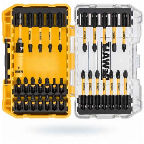Najwyższej jakości bity wkrętarskie DeWalt FLEXTORQ ze specjalną strefą skrętną, która absorbuje maksimum momentu obrotowego i ogranicza wszelkiego rodzaju uszkodzenia. Producent zapewnia o dużej niezawodności i zwiększonej szybkości prezentowanych końcówek. Różnorodności bitów sprawia, że znajdą swoje zastosowanie w wielu sytuacjach, a cały zestaw może posłużyć jako praktyczny podarunek dla majsterkowicza.