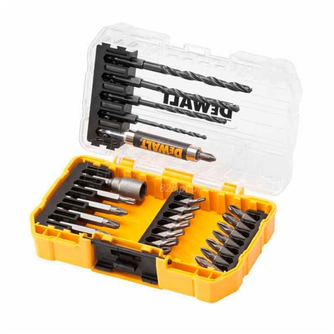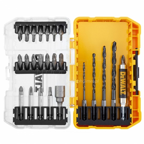 Bity przeznaczone w szczególności do wiertarek i wiertarko-wkrętarek. Całość zapakowana w mocną i praktyczną walizkę z tworzywa wykonanej w systemie ToughCase+, który pozwala na przechowywanie i transport akcesoriów za pomocą organizera TSTAK DT70716 (w pełni kompatybilne z systemem TSTAK).