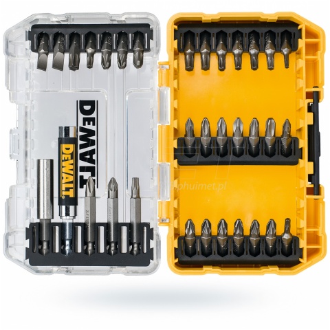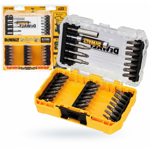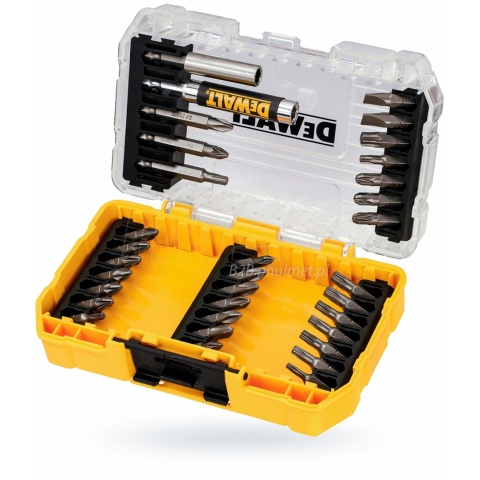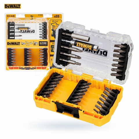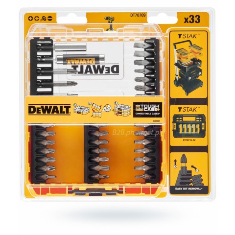 Bity przeznaczone w szczególności do wiertarek i wiertarko-wkrętarek. Całość zapakowana w mocną i praktyczną walizkę z tworzywa wykonanej w systemie ToughCase+, który pozwala na przechowywanie i transport akcesoriów za pomocą organizera TSTAK DT70716 (w pełni kompatybilne z systemem TSTAK).