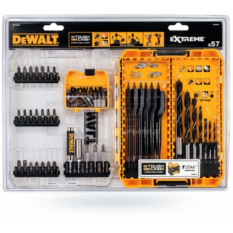 Bity przeznaczone w szczególności do wiertarek i wiertarko-wkrętarek. Całość zapakowana w mocną i praktyczną walizkę z tworzywa wykonanej w systemie ToughCase+, który pozwala na przechowywanie i transport akcesoriów za pomocą organizera TSTAK DT70716 (w pełni kompatybilne z systemem TSTAK).
