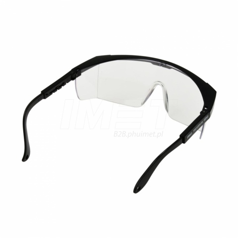 oprawka wykonana z tworzywa sztucznego regulowana długość zauszników otwory na końcach zauszników (możliwość montażu sznurka i zawieszenia okularów na szyi) klasa ochrony: II