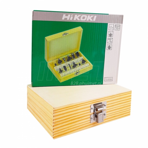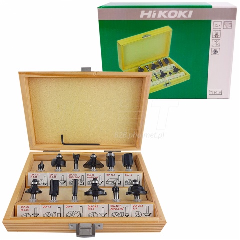 | Zestaw 12 frezów do drewna HiKOKI 711016 z uchwytem walcowym o średnicy 6mm. W skład zestawu wchodzą różnego rodzaju frezy w wielu kształtach i rozmiarach, aby odpowiednio dobrać końcówkę wykańczającą. Całość znajduje się w estetycznym drewnianym pudełku, każdy frez ma swoje indywidualne miejsce, ułatwiając dobór odpowiedniego kształtu i wielkości. Frezy pasują do najbardziej popularnych frezarek dostępnych na rynku sieciowych i akumulatorowy tak jak: DeWALT, Makita, Hikoki / HiKOKI, Milwaukee oraz innych. Najważniejszym kryterium kompatybilności jest średnica trzpienia współpracującego urządzenia, która wynosi 6mm.