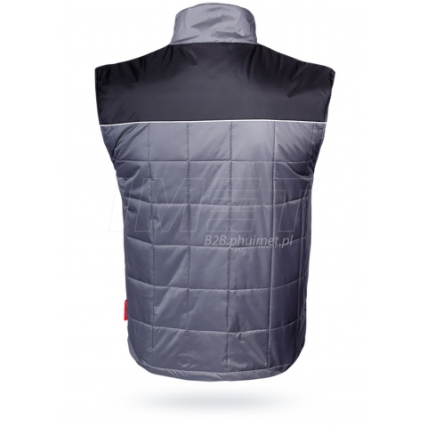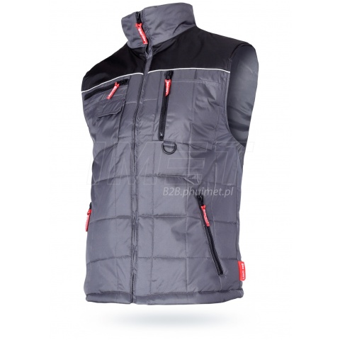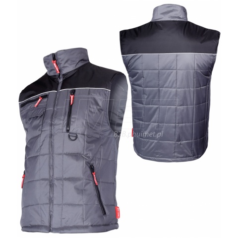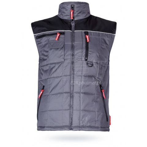 Wykonana z mocnego materiału o gramaturze 155g/m2. uszyta z impregnowanej tkaniny powlekanej PVC. Taka tkanina idealnie zabezpiecza przed wsiąkaniem wody i w dodatku jest bardzo ciepła. Bezrękawnik posiada 8 kieszeni, 7 zewnętrznych w tym 4 zamykane na suwak oraz 1 wewnętrzna. Mała kieszonka na telefon. Bardzo mocny zamek błyskawiczny bezrękawnika. Wycięcia rękawów od wewnątrz wykończone specjalnymi ściągaczami chroniącymi przed wiatrem. Regulacja szerokości bezrękawnika. Na przedniej i tylnej części umieszczone są elementy odblaskowe. Powłoka: poliester typu pognee o gramaturze 155g/m2. Ocieplina o gramaturze 180g/m2. Podszewka: tafta o gramaturze 50g/m2. Bezrękawniki posiadają certyfikat CE oraz EN ISO 13688. Pierwsza kategoria środków ochrony indywidualnej. EN ISO 13688 - Norma Międzynarodowa określa ogólne wymagania, dotyczące wykonania, z zakresu ergonomii, nieszkodliwości, oznaczania wielkości, procesu starzenia, kompatybilności i znakowania odzieży ochronnej oraz informacji, które powinien dostarczać producent wraz z wyrobem. Niniejsza Norma Międzynarodowa jest przeznaczona do stosowania tylko w połączeniu z innymi normami określającymi wymagania dla konkretnego wykonania i nie może być stosowana jako samodzielny dokument bazowy). |