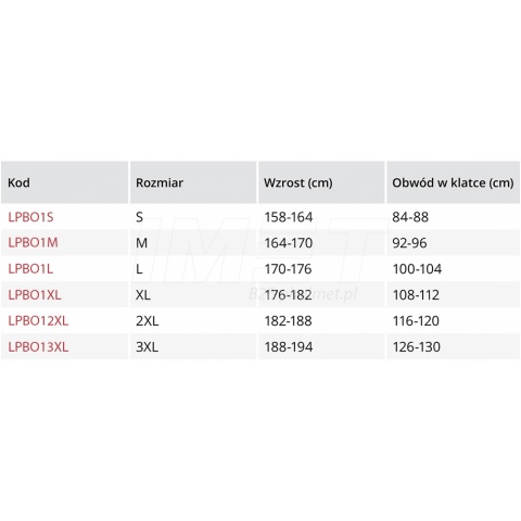 | Obwód klatki piersiowej: | 108 - 112 cm |