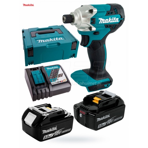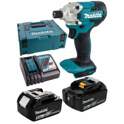 Wersja RTJ - Zakrętarka wyposażona w ładowarkę oraz dwa akumulatory 5Ah 18V - całość pakowana w walizkę systemową Makpac.